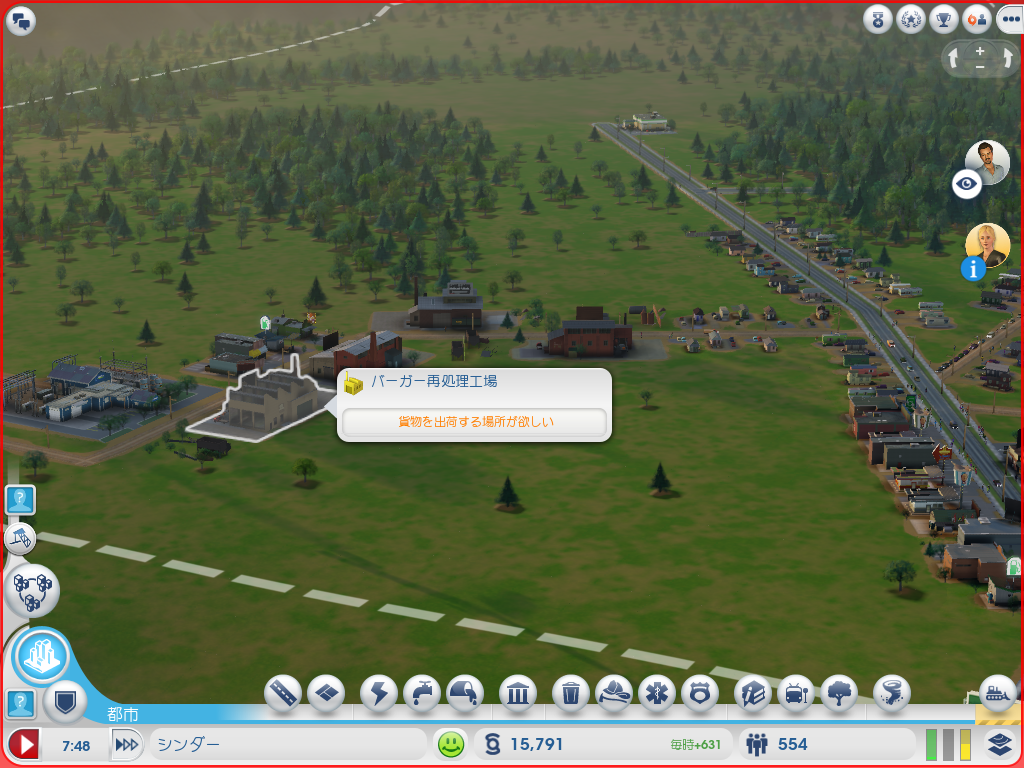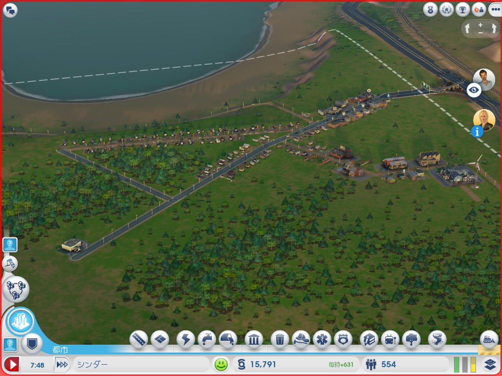 まず道路を引いて、道沿いに家や工業地帯などを配置しています。