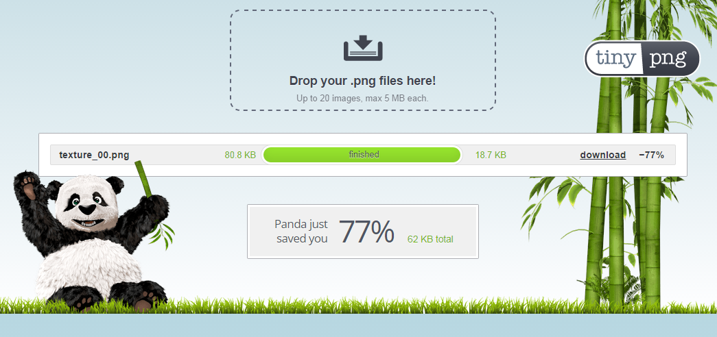 それぞれおよそ80KBもあったテクスチャが、18KB程にまで圧縮された。